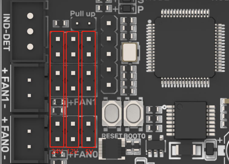 | Fan Port | 3 x 2 pins CNC (FAN0, FAN1, Pi-FAN) (5/12/24V Selectable Voltage), 1 x Always On (FAN) |