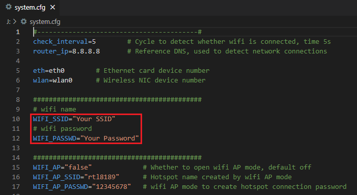 CB1 cannot directly use the Raspberry Pi Imager software to set up Wi-Fi name and password like CM4. After the OS image is burned, there will be a FAT32 partition recognized by the computer on the MicroSD card. In this partition, there is a configuration file named "system.cfg".