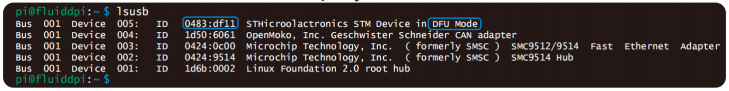 5.Enter lsusb in the SSH terminal to query the DFU device ID.