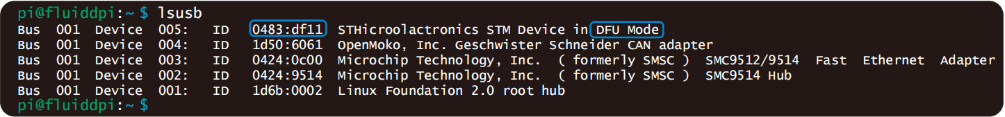 Replace “0483:df11” with the actual device ID obtained in the previous step.