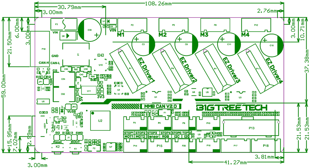| Mounting Dimensions | For detailed information, please refer to BIGTREETECH MMB CAN V2.0-SIZE.pdf |