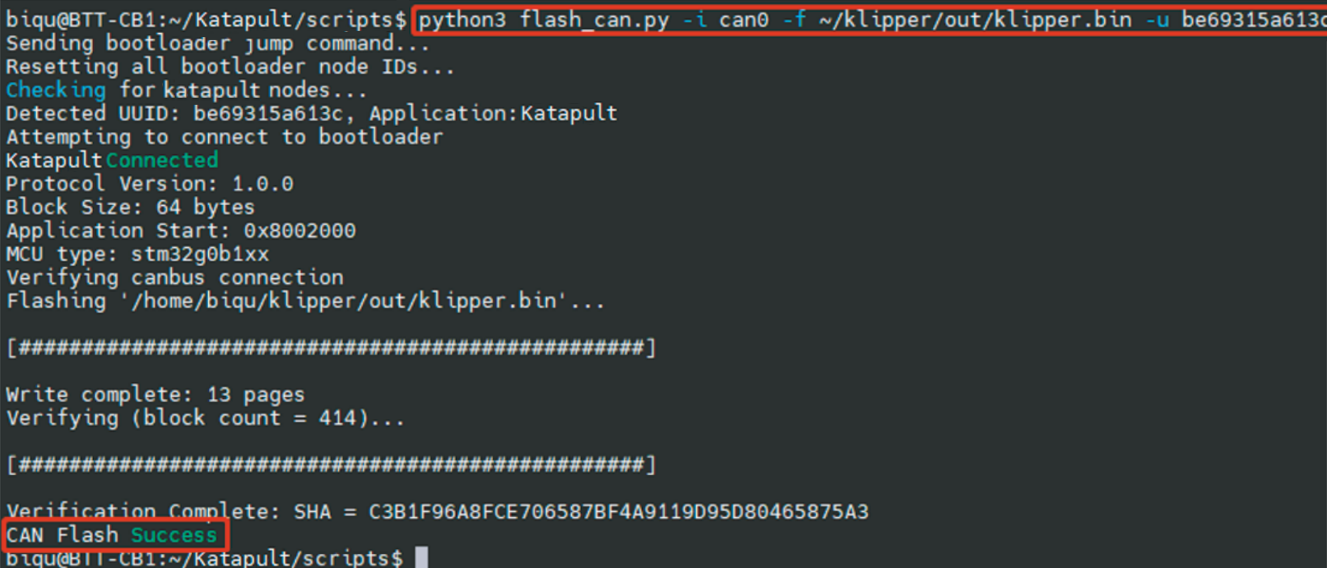 python3 ~/katapult/scripts/flash_can.py -i can0 -f ~/klipper/out/klipper.bin -u be69315a613c