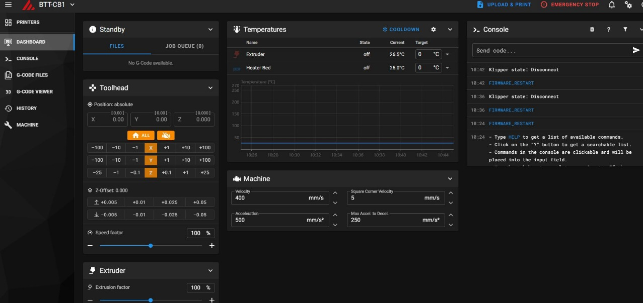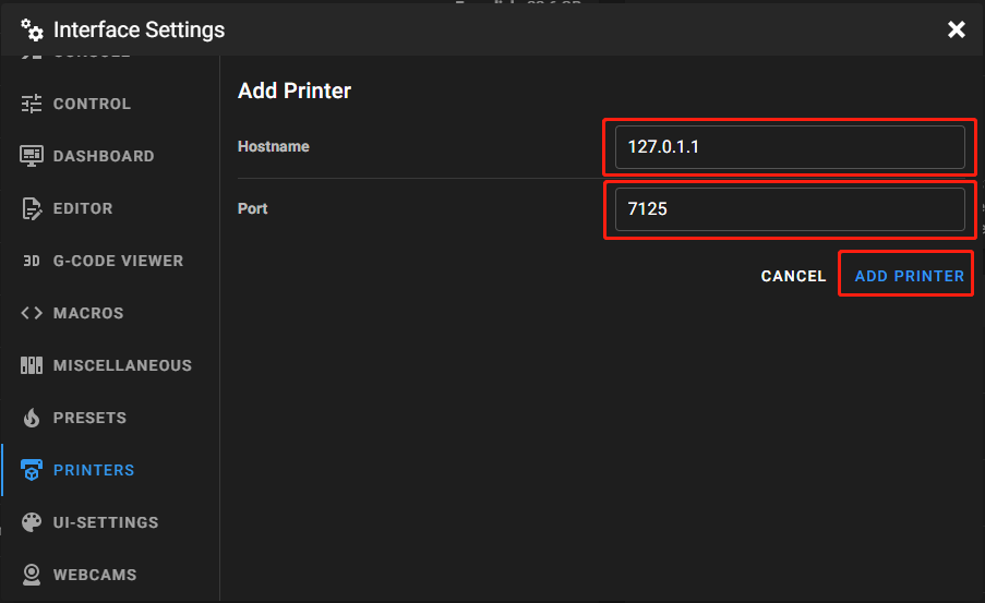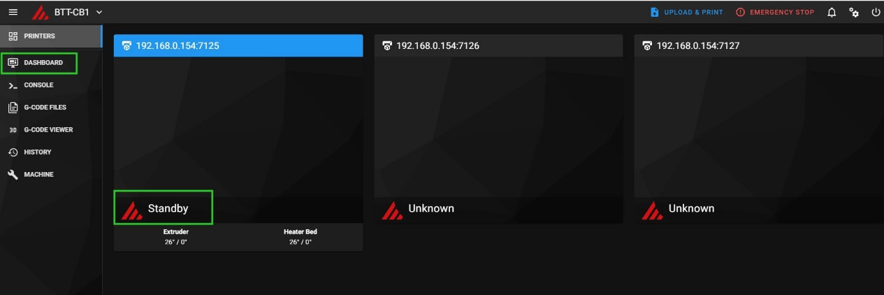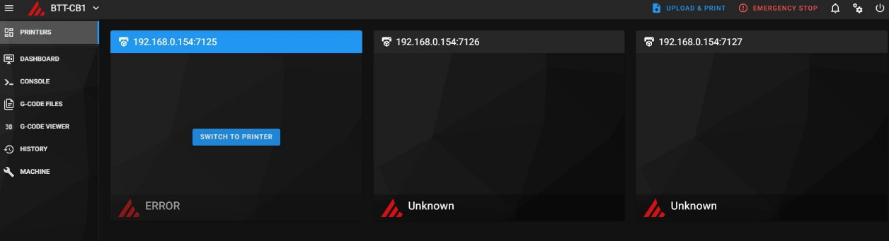 With this, Printer 1 is set up and you can use the control interface to control Printer 1