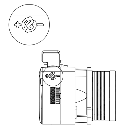 The drive gear clamp distance is adjustable to accommodate different types of filaments. Rotate the Limit Screw counterclockwise (toward the marked "(-)") to decrease distance or increase clamping pressure, which is ideal for hard filament, or clockwise (toward the marked "(+)") to increase distance to decrease pressure, ideal for softer materials.