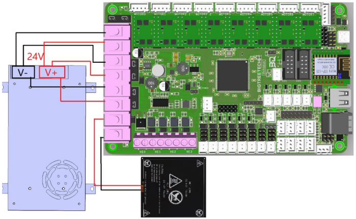 - Provides separate power inputs for motors, bed heating and logic/fans/hotends.