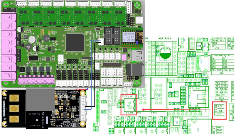 When using the BIGTREETECH Relay V1.2 module, the wiring can be performed as shown in the figure below.