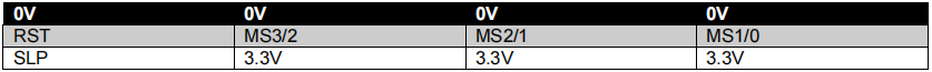 Connecting jumpers between the upper two rows will set the middle pin (MS) to 0V. Connecting jumpers between the lower two rows will set the middle pin (MS) to 3.3V except for the jumpers in the first column where it will connect SLP and RST.