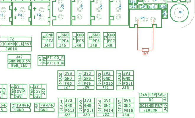 The probe port has been provided to allow users to interface bed probes directly to the motherboard without the need for a BAT85 diode to act as a protection against high voltages. The probe signal pin connects to an internal optocoupler that in turn triggers the pin connected to the microcontroller.
