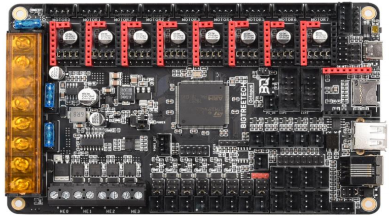 The BIGTREETECH Octopus V1.0 is a powerful and feature rich, 3D printer motherboard that supports up to 8 stepper drivers with 9 stepper driver outputs in total. It is designed and manufactured by the 3D printing team of Shenzhen BIQU Innovation Technology Co., Ltd..