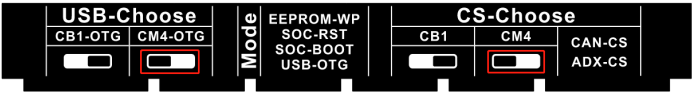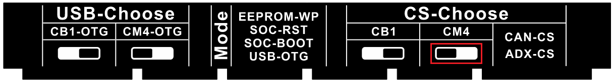 7.Refer to the figure below, and slide the switch of USB-Choose and CS-Choose to the CM4 position.