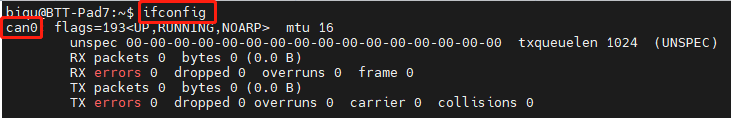 5.In the SSH terminal, execute the command "ifconfig" to check if the can0 service exists. A normal situation is shown in the figure.