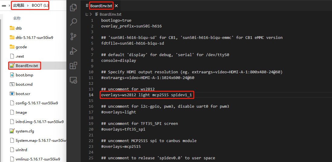 Open the "BoardEnv.txt" configuration file, and set the following parameters: