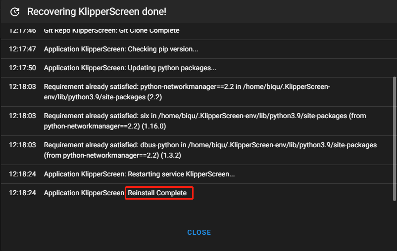 Since KlipperScreen does not provide API interfaces for touch feedback, it is necessary to replace the official KlipperScreen with our modified version of KlipperScreen. Follow the steps below to replace the KlipperScreen:
