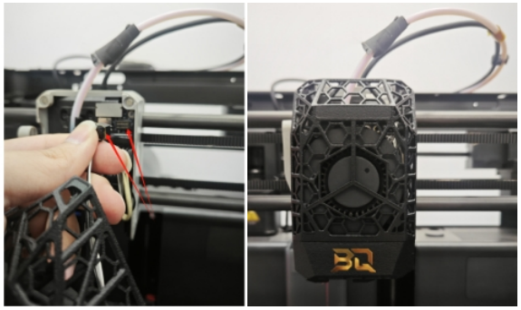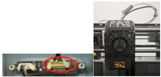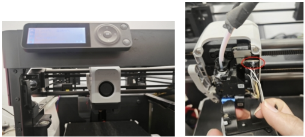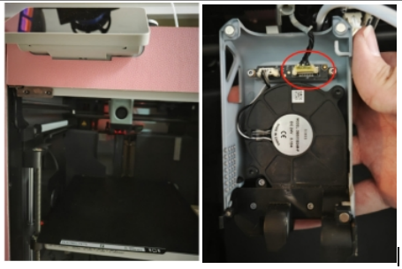 1、Turn off the printer and remove the outer casing. Disconnect the fan connector (as indicated by the red circle).