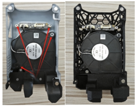 2、Loosen the screws that secure the original light board and fan. Place the fan and light board inside the Panda Jetpack, then secure the screws.