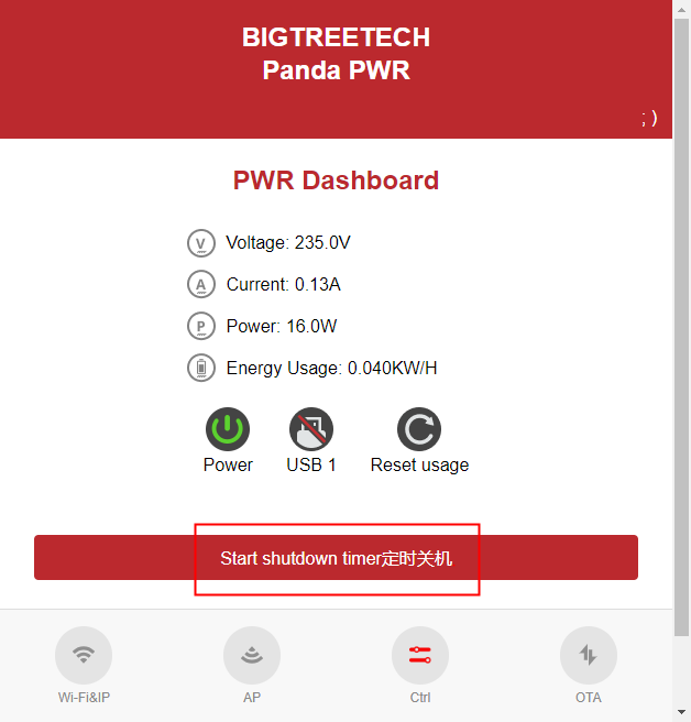 When you need the printer to shut down after printing, activate the auto power-off switch, set the countdown time and temperature limit values, and start the countdown when the conditions are met. After the countdown completes, Panda PWR will automatically cut off the power supply to the printer.