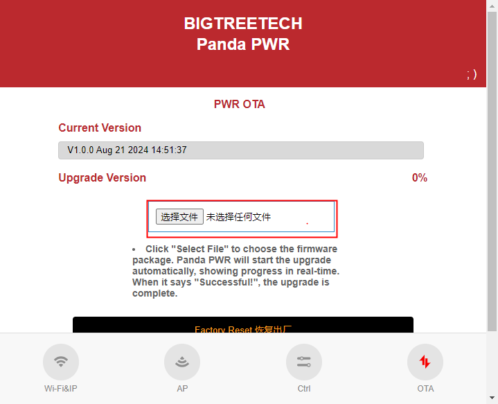 If the Panda PWR fails to start and cannot perform an OTA update, use the recovery tool to restore functionality. Recovery Tool Download