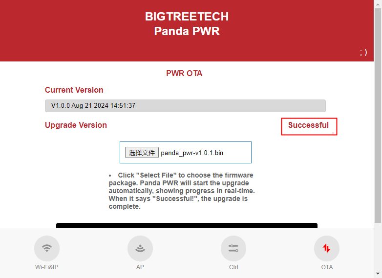 - Once the update is complete, "Successful" will appear on the right side of the screen.
