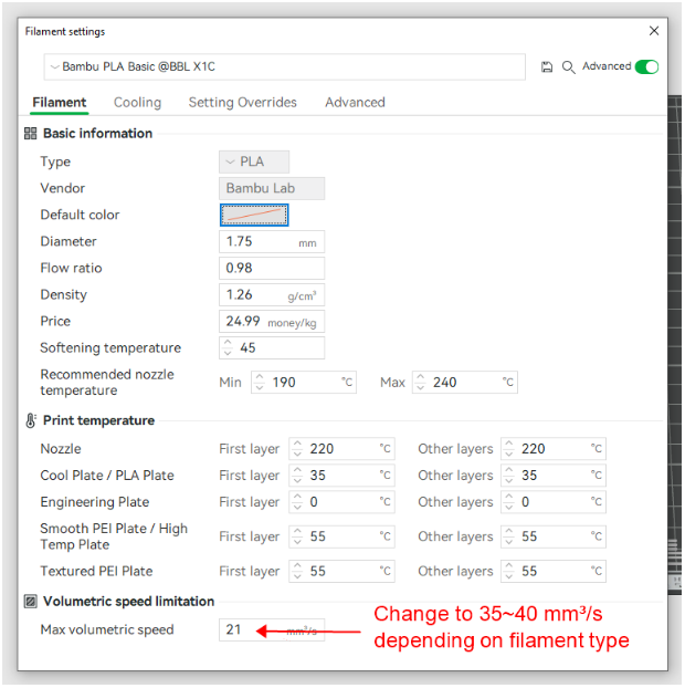 Please find more detailed slicer setting guide here: https://e3d-online.zendesk.com/hc/en-us/articles/4777443097757-Filament-Starter-Settings