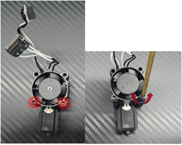 Make sure to securely tighten the hotend screws using an H2.0 hex key, and avoid over-tightening.