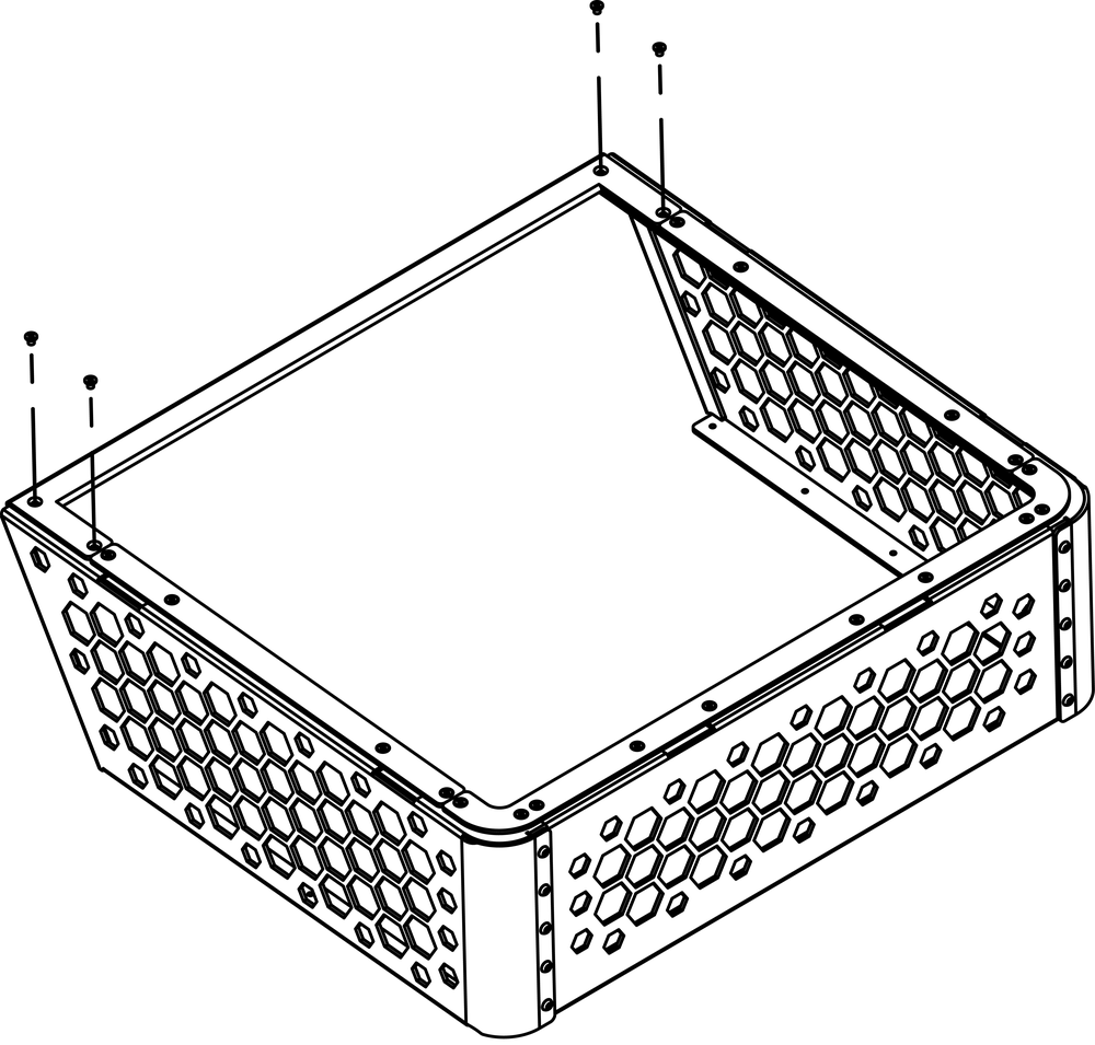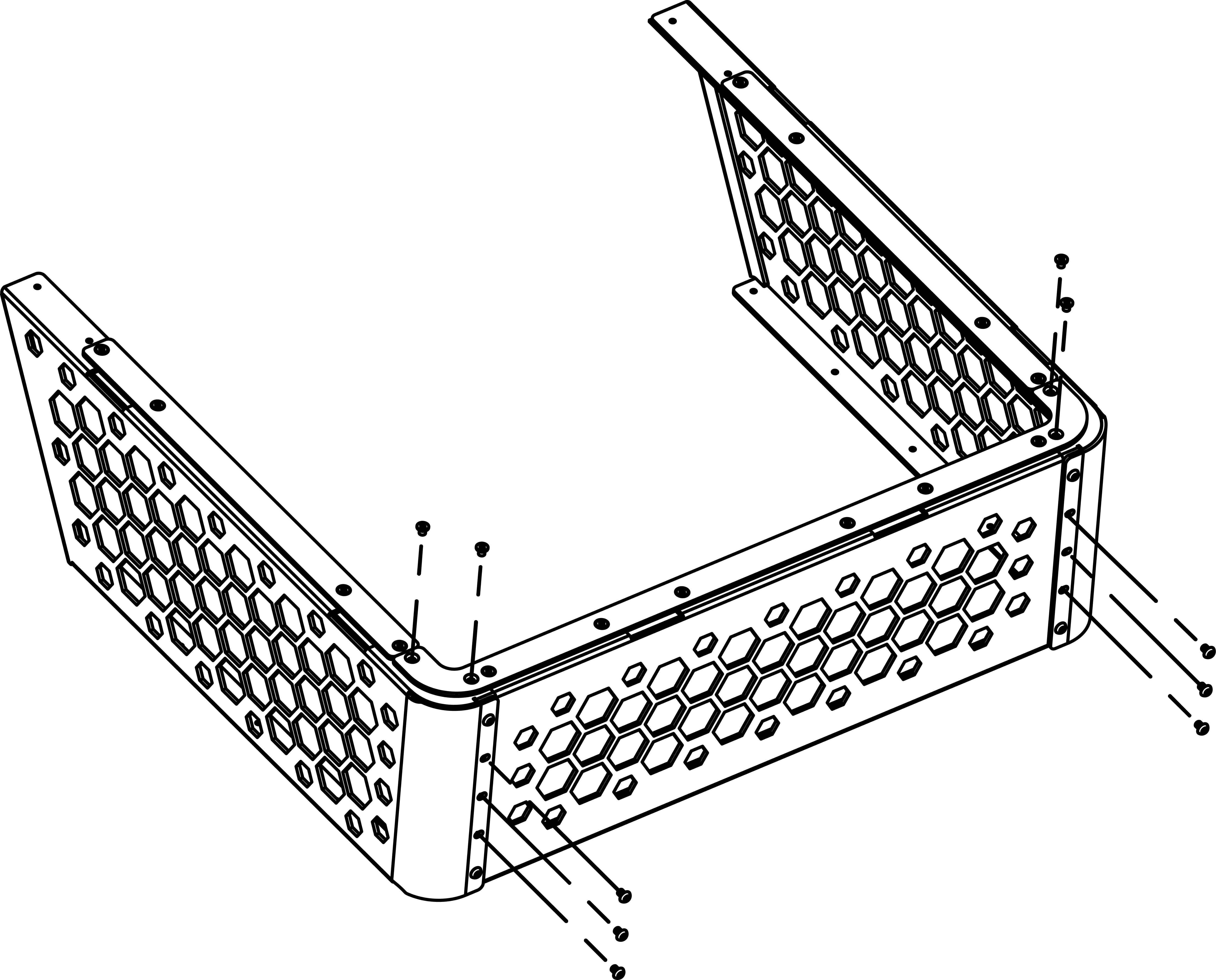 Position the left and right side plates against the rear plates, ensuring all edges and screw holes align.