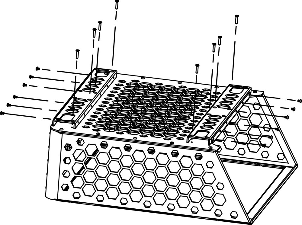 Use M3x14 flat head countersunk screws and M3x4 button head cap screws to attach the AMS Support Bars: M3x14 screws for vertical mounting, and M3x4 screws for side mounting onto the top plate.