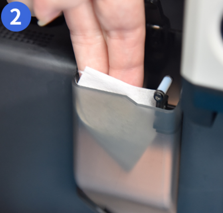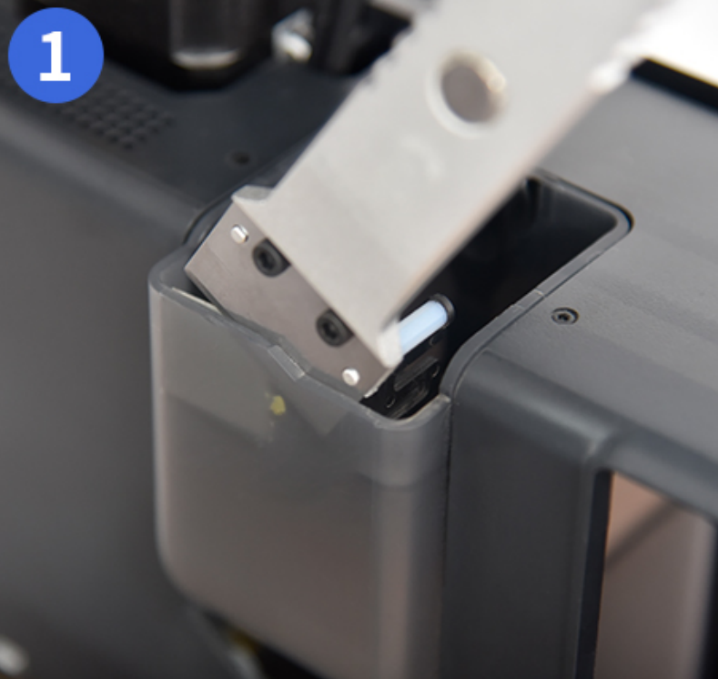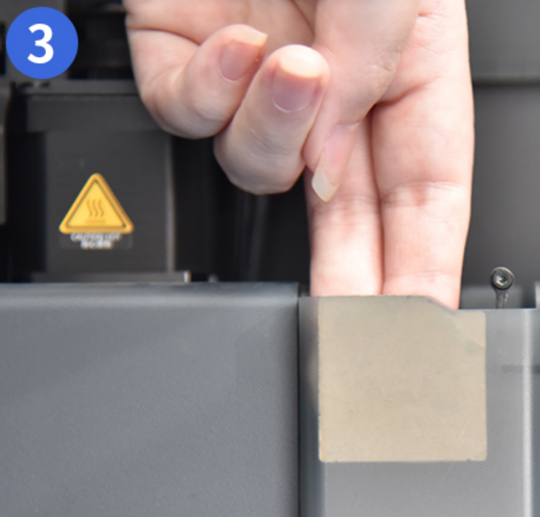 Peel off the adhesive backing and align the Panda Purge Shield to the chute front, pressing firmly into place.