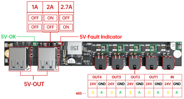 • The 5V output includes a fault indicator light that glows red when overcurrent protection is triggered, simplifying troubleshooting during DIY projects.