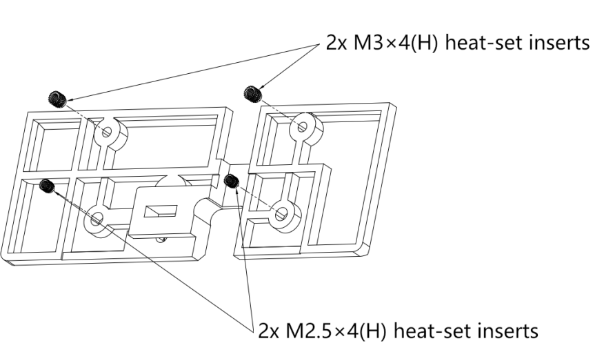 1.Use a soldering iron to install heat-set inserts into the printed mounting bracket.