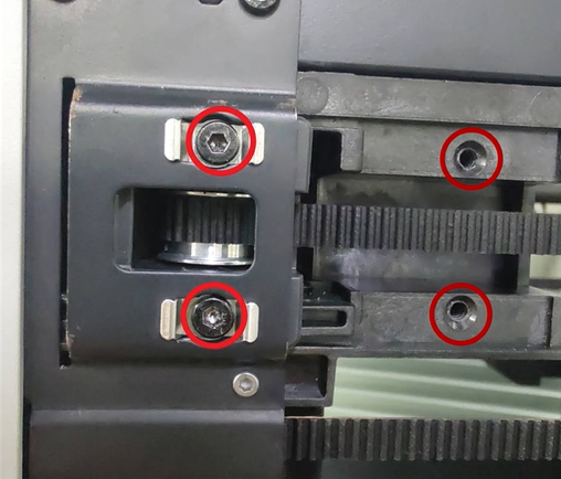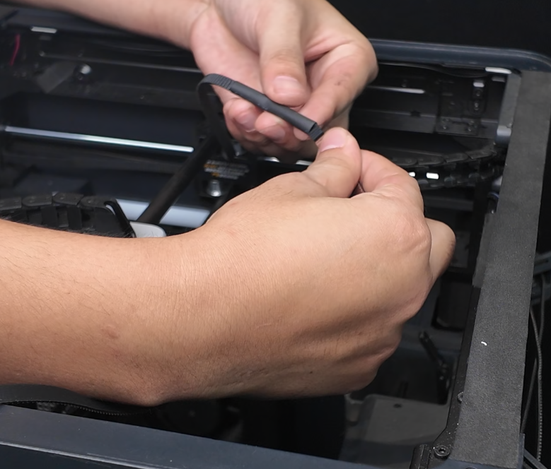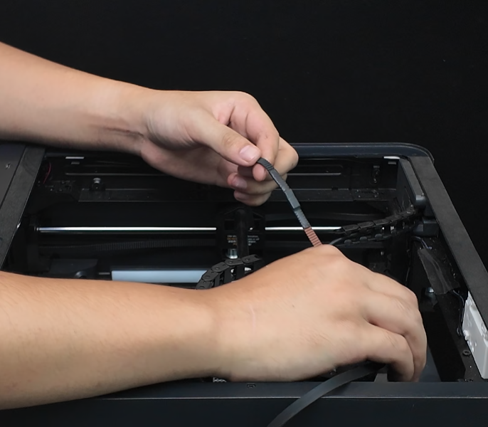 Insert both ends of the new belt into the corresponding slots on both sides of the toolhead. Then reinstall the fixing screws.