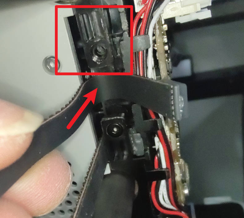 Use tweezers/pliers to gently grasp the fixing block and pull out the original belt.