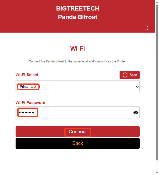 After the device scans for available Wi-Fi networks, select your target network, enter its password, and click Connect.