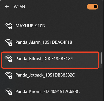 - The device will create a hotspot named "Panda_Bifrost_XXXXXXXXXXXX", with the default password "987654321".