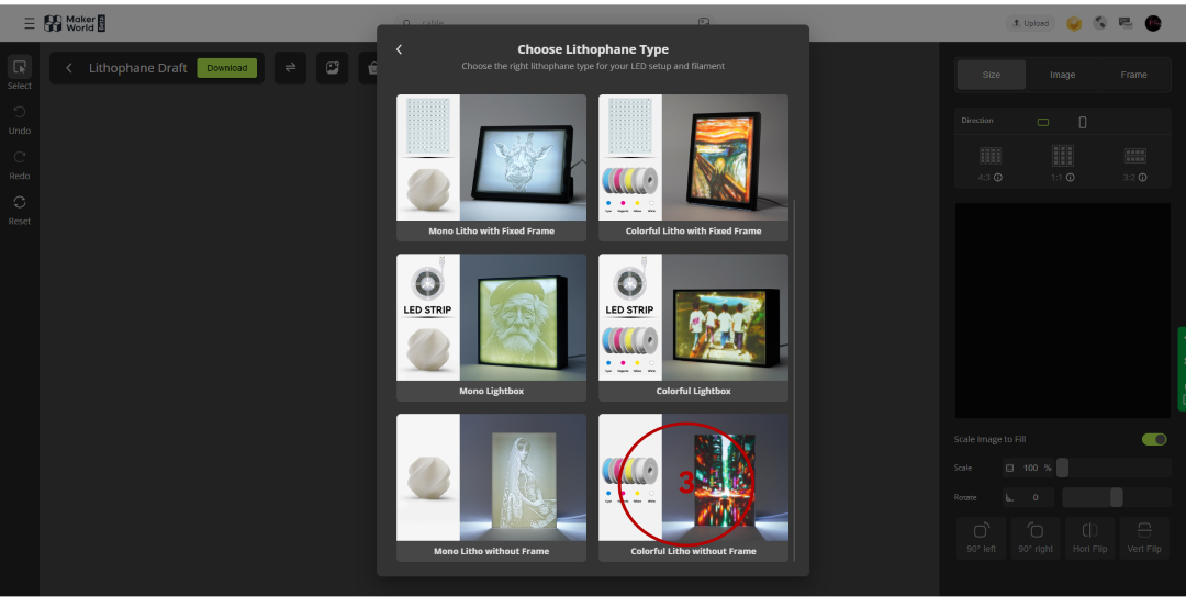 Click to select the "Colorful Litho without Frame" option.