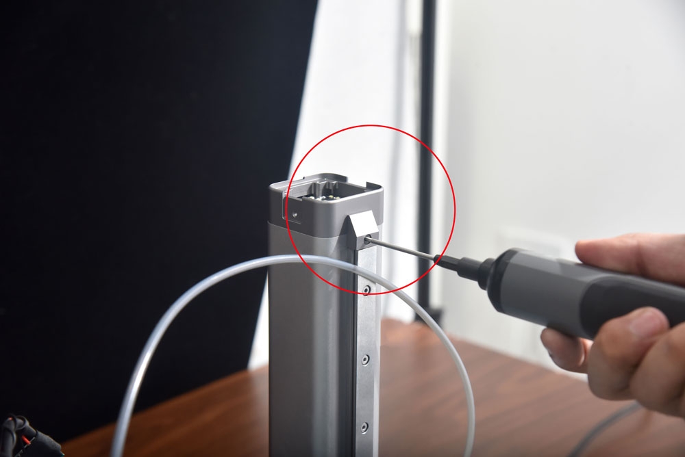 Use an H2.0 screwdriver to remove the stock screw.