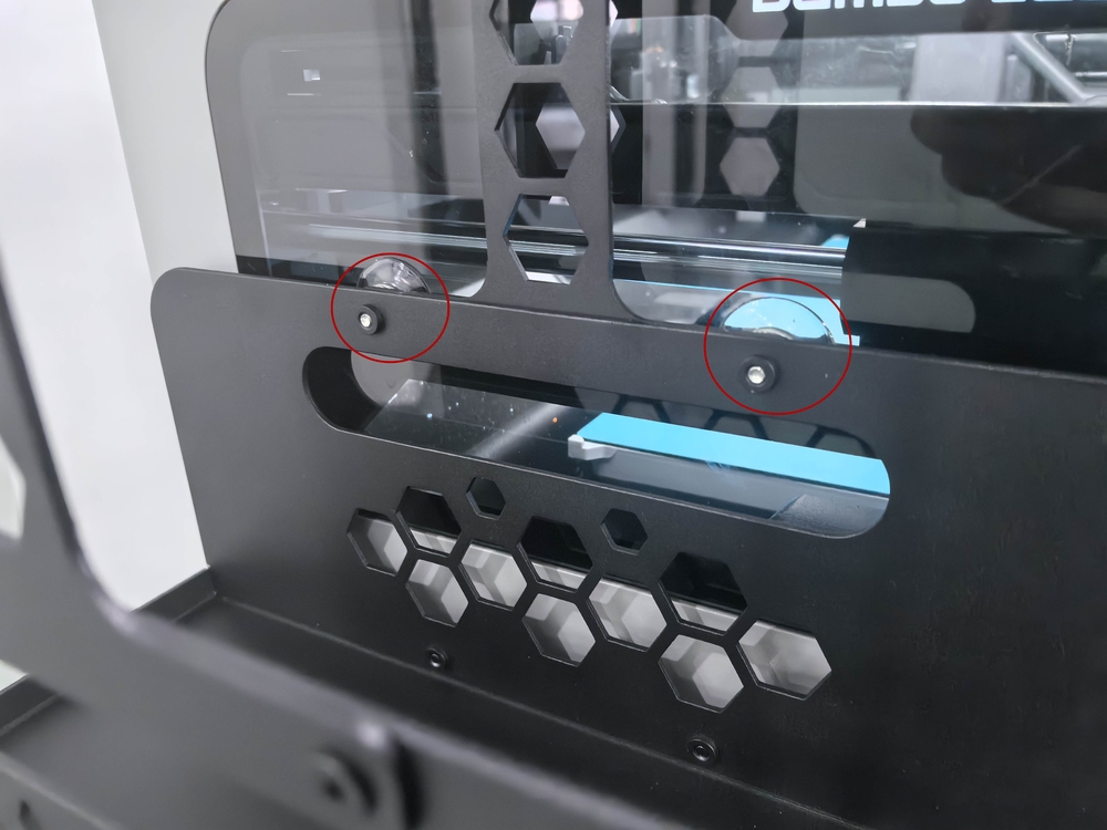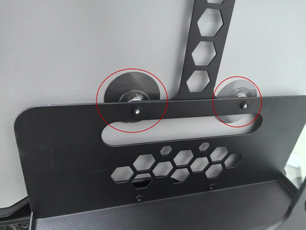 Use the round metal sheet from the AMS HT Storage Rack package. Peel off the adhesive backing and surface protection film, then stick it to the area where the suction cup screws will make contact with the printer’s outer wall. (If the suction cup screws will be attached to the printer's smooth side window, this step can be skipped—no metal sheet is needed.)