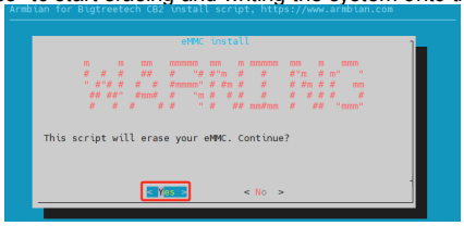 ① Select "Yes" to start erasing and writing the system onto the eMMC.