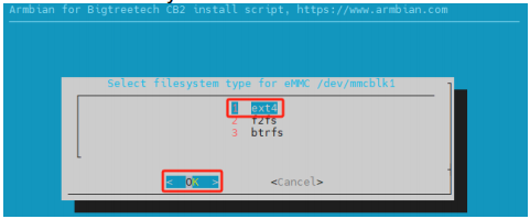 ② Choose the filesystem "1 ext4" and then select "OK".
