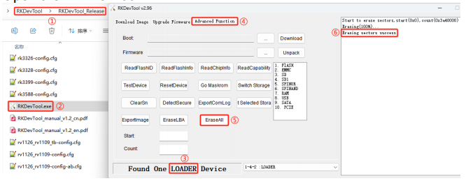 ③ The software will recognize a "LOADER" device. If it recognizes "MASKROOM," it indicates there is no data in the eMMC, hence no erase operation is necessary.