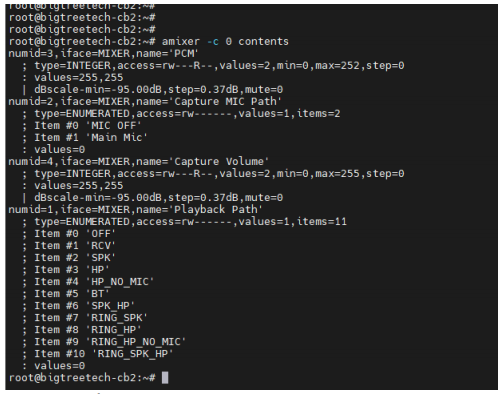 amixer -c 0 contents (0 represents the card 0 found in the previous aplay -l command)