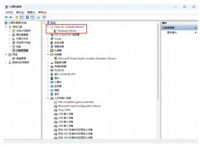 ③ After the installation is complete, hold down the “Recovery” button, replug the Type-C cable. "Device Manager" should now recognize a “Rockusb Device”, indicating that the driver installation is successful.