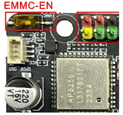 Default position is OFF, which means the eMMC can be used normally. If you do not wish to boot from eMMC, switch the EMMC-EN position to ON. This will short the eMMC signal lines to GND and disable eMMC boot.
