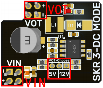 Voltage of the SKR 3-DC MODE is set by connecting jumpers on 5V or 12V on VOTChoose pins.