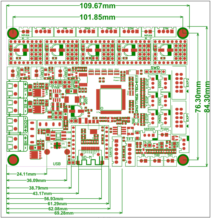 | Dimention | 11085mm, for details please refer to:BIGTREETECH SKR 3-SIZE.pdf* |