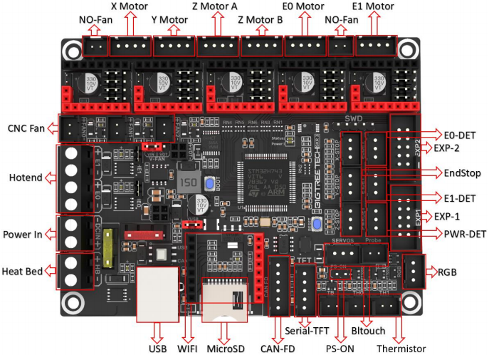 | Expansion port | BLTouch(Servos、Probe)、PS-ON、PWR-DET、Fil-DET、RGB、CAN FD |
