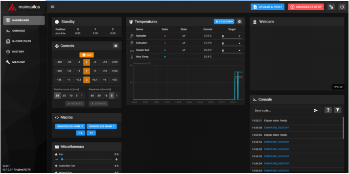 2、Upload your finished config file into Configuration Files, and rename to printer.cfg