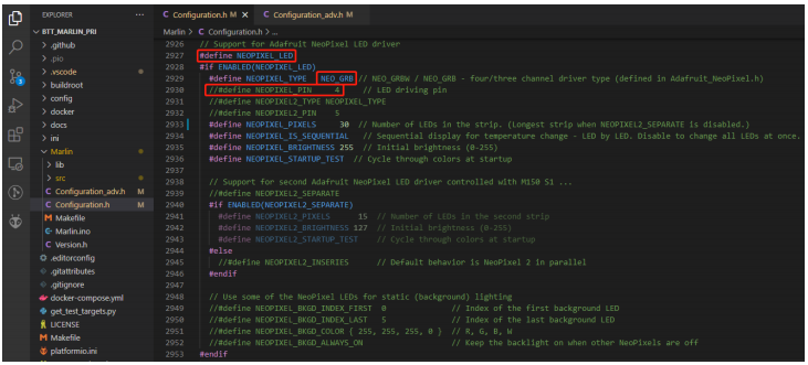 #define NEOPIXEL_LED // enable Neopixel #define NEOPIXEL_TYPE NEO_GRB // set Neopixel type //#define NEOPIXEL_PIN 4 // disable PIN setting,use the correct signal pin in the pin file of the motherboard #define NEOPIXEL_PIXELS 30 // number of leds #define NEOPIXEL_STARTUP_TEST // the light will show red green and blue sequentially to self-test.