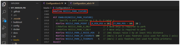 #define NOZZLE_PARK_POINT { (X_MIN_POS + 10), (Y_MAX_POS - 10), 20 } //set the X,Y,and Z offset coordinate of the nozzle