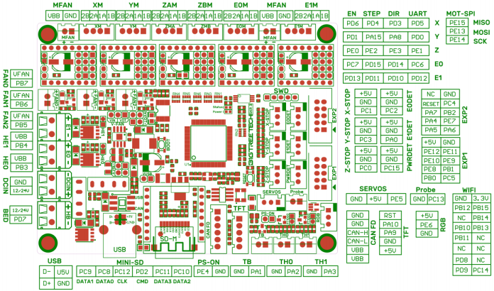 | Steppers supported | TMC5160、TMC2209、TMC2225、TMC2226、TMC2208、TMC2130、ST820、LV8729、DRV8825、A4988 etc. |