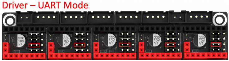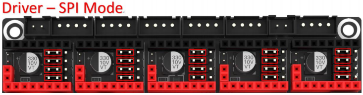 i.e:TMC2130、TMC5160、TMC5161 et.c,Place jumpers according to the diagram below,microstep and current can be configured in firmware.